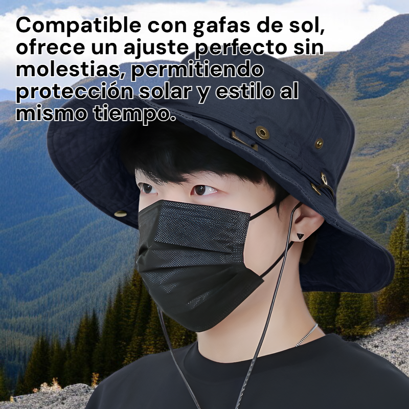 ● Compatible con gafas de sol, ofrece un ajuste perfecto sin molestias, permitiendo protección solar y estilo al mismo tiempo.