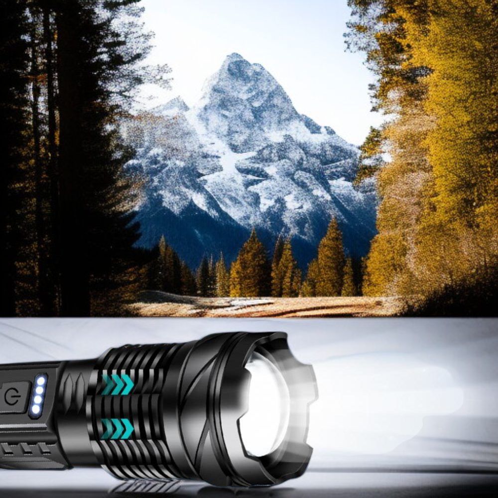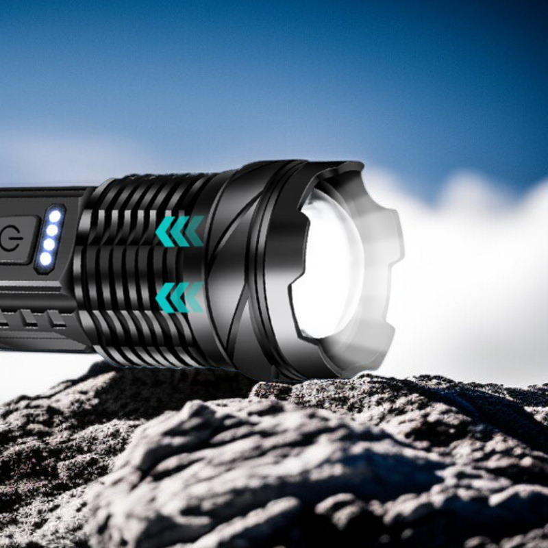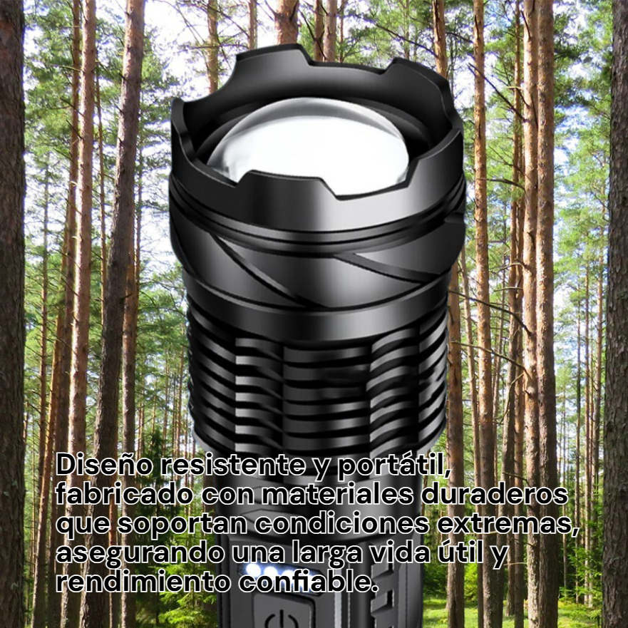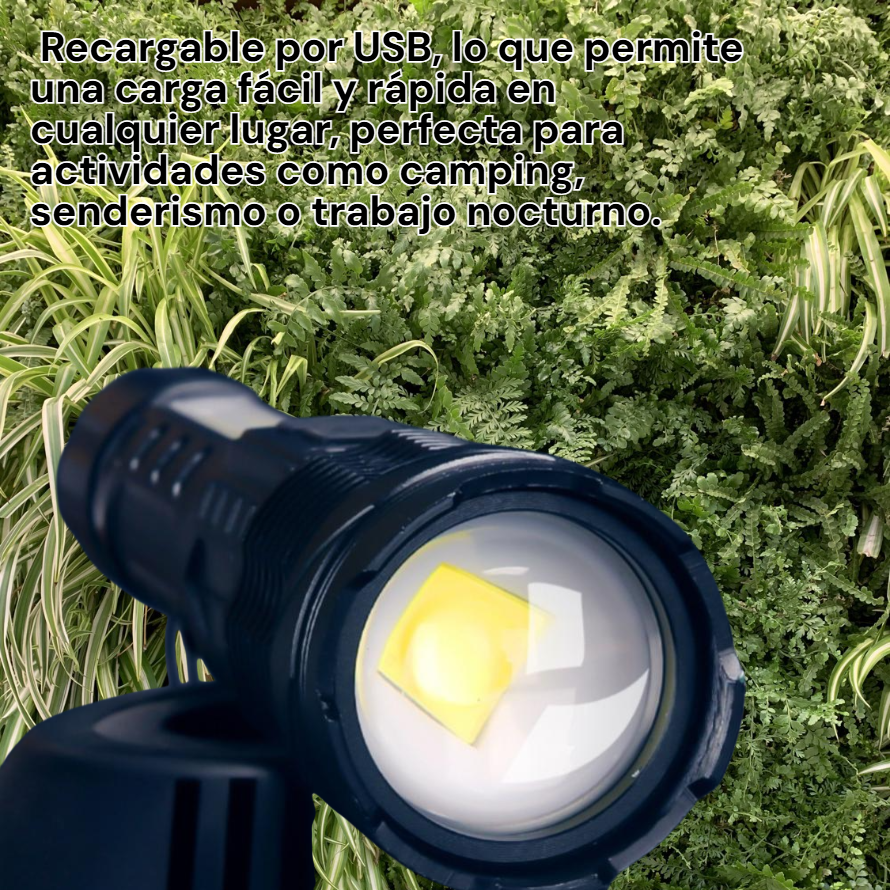 ● Linterna de alta potencia de 30W con luz blanca láser, ideal para iluminar grandes áreas al aire libre durante la noche o en situaciones de emergencia. ● Recargable por USB, lo que permite una carga fácil y rápida en cualquier lugar, perfecta para actividades como camping, senderismo o trabajo nocturno. ● Diseño resistente y portátil, fabricado con materiales duraderos que soportan condiciones extremas, asegurando una larga vida útil y rendimiento confiable.